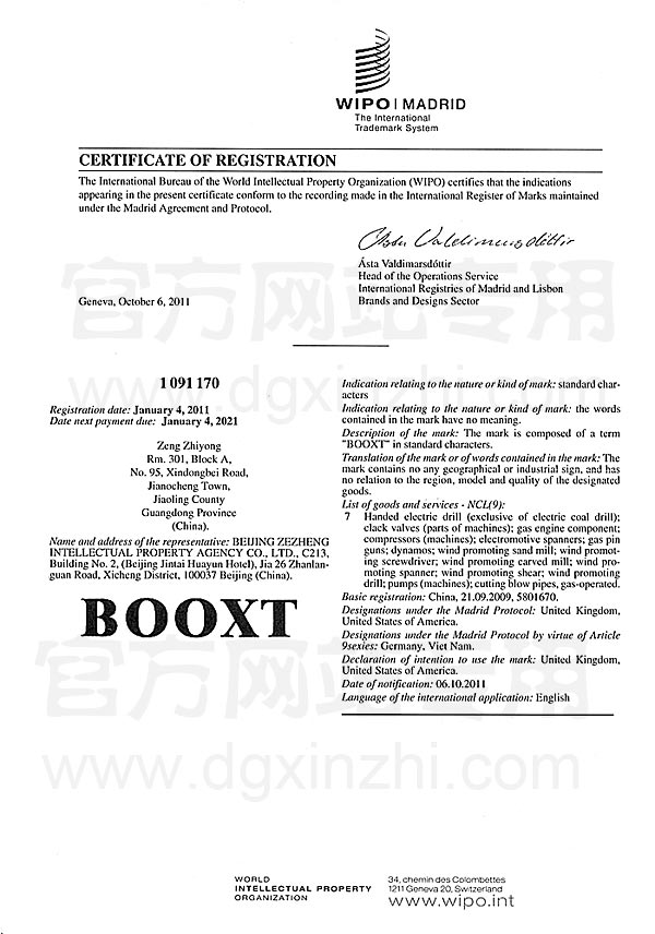 • 國際知識產權組織(WIPO)認證證書
