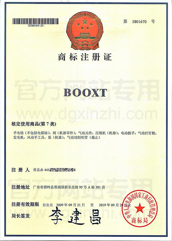 • BOOXT波世特商標注冊證